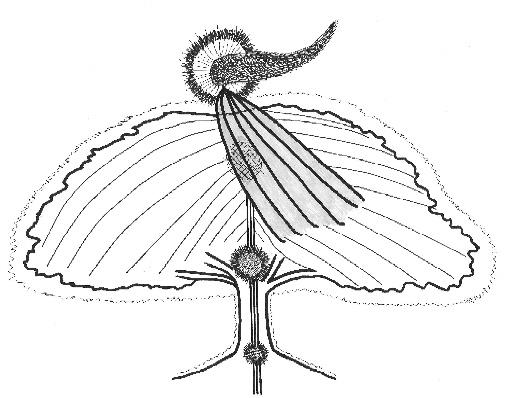 至於植物氣場內的螺旋力,海克斯汀(Haxeltine)指出探測師們通常發現樹的氣場內有多個能量帶。大家描述說是二維空間的能量帶環繞著樹木周圍也有說是垂直沿著樹幹螺旋上升的螺旋式能量帶。這些環帶的強度和大小似乎是由樹的年齡、大小、季節和健康來決定。 一棵樹周圍可以探測出多少能量帶呢?薩滿師彼德•阿吉茲談到感知一棵大樹的氣場,「會有四層,各相距幾英尺,樹皮內有第五層。」想像上這第五層就是那順著樹幹垂直旋轉上下的能量帶。如圖1所示。當然這會是個很容易用探測確認的事,是這樣嗎? 圖1 探測得出的樹螺旋